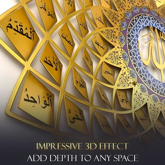 3D Golden Metal 99 Names of Allah Islamic Wall Art (Asma ul Husna) - Global Wall Art