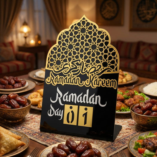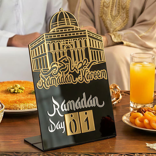 Ramadan Kareem Calendar Changeable Dates Islamic Motif Metal & Acrylic Table Decor - Global Wall Art