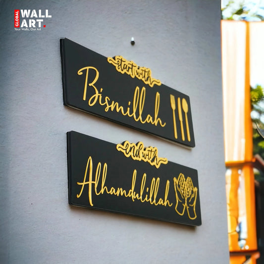 Start with Bismillah - End with Alhamdulillah Islamic Acrylic Wall Art - Global Wall Art