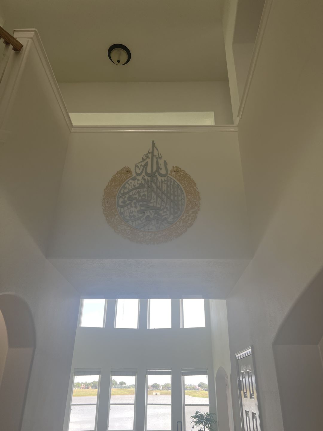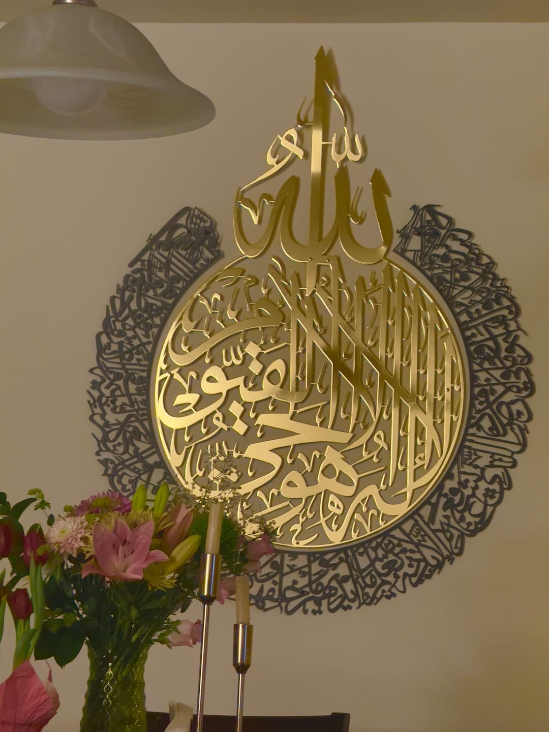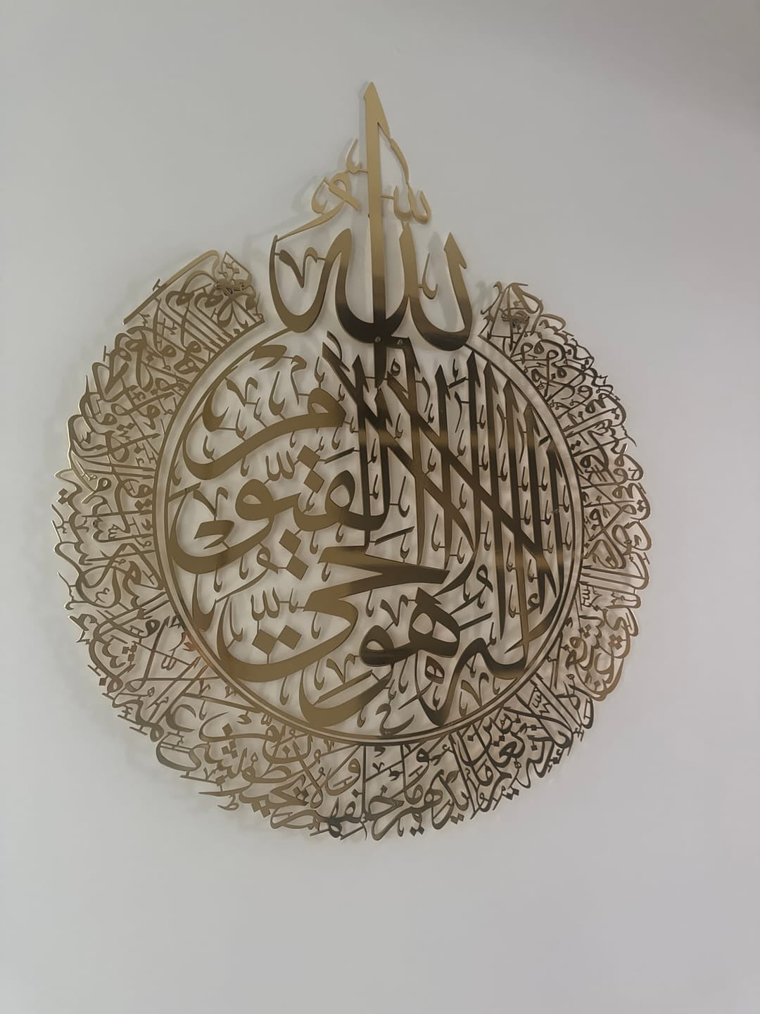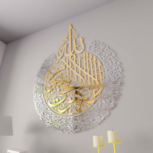 Ayatul Kursi in Shiny Gold and outer Silver Steel Metal Islamic Wall Art - Multicolor - Global Wall Art