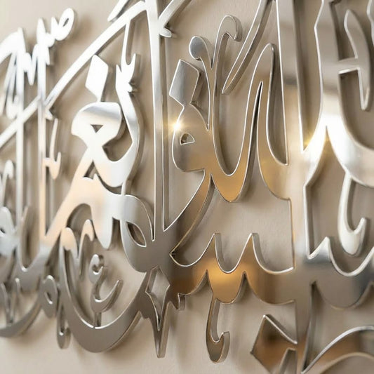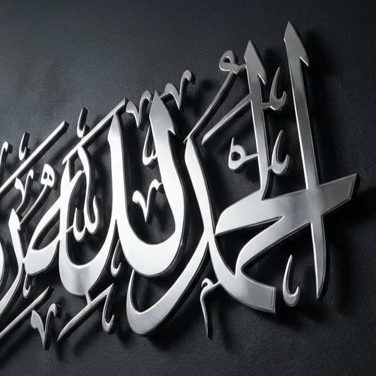 Alhamdulillah Rabbil Alamin 3D Silver Metal Calligraphy Wall Art - Multicolor - Global Wall Art