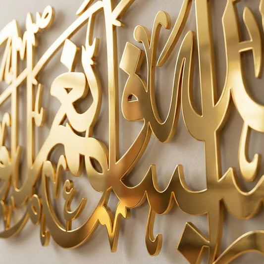 Alhamdulillah Rabbil Alamin 3D Golden Metal Calligraphy Wall Art - Multicolor - Global Wall Art