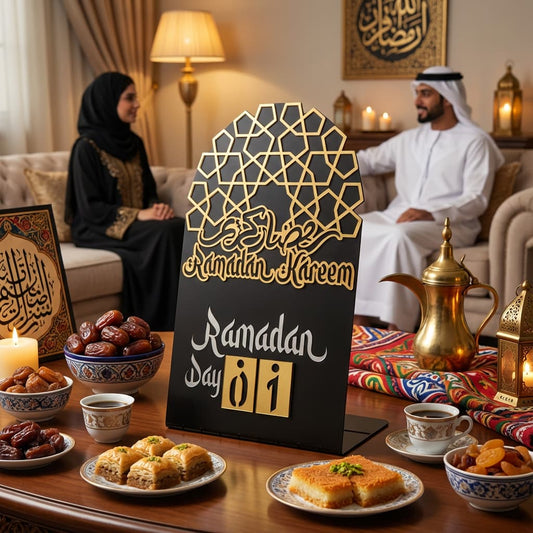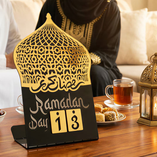 Ramadan Kareem Calendar Changeable Dates Islamic Motif Metal & Acrylic Table Decor - Global Wall Art
