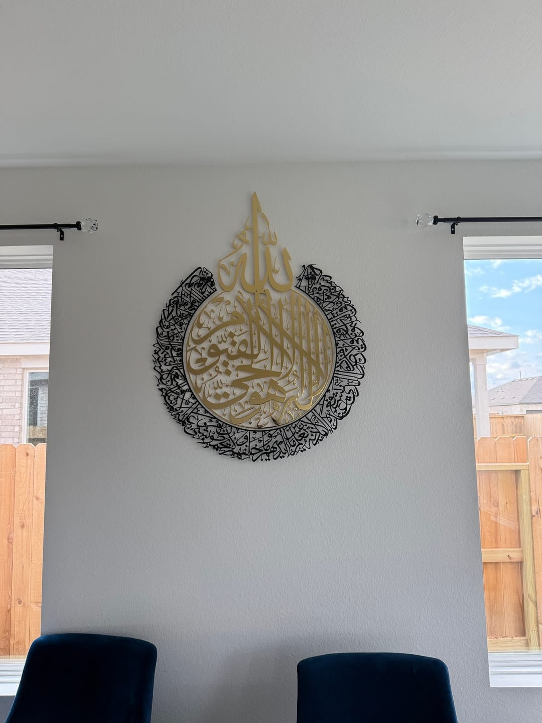 Ayatul Kursi Shiny Gold & Black Steel Metal Islamic Wall Art - Multicolor - Global Wall Art