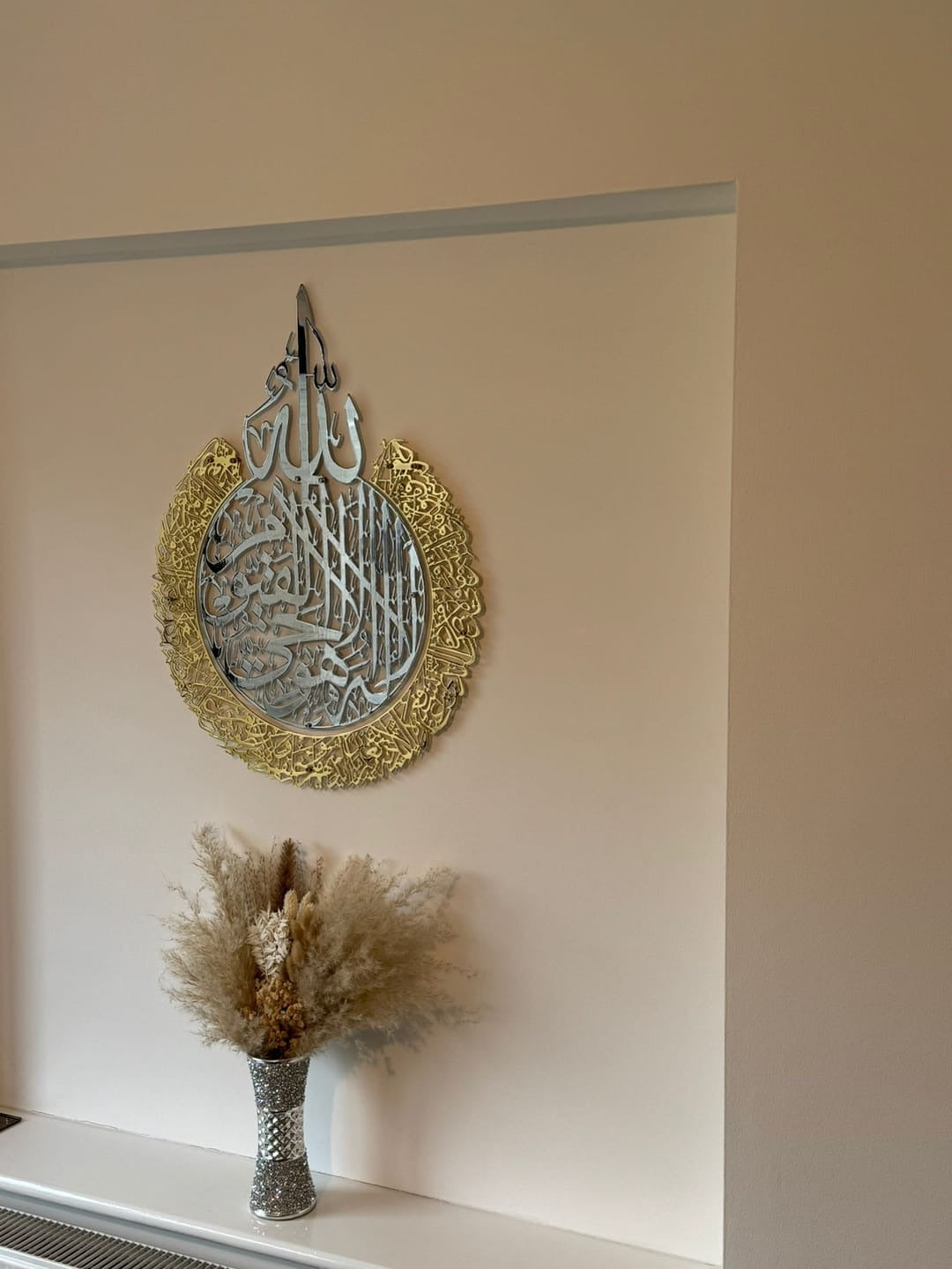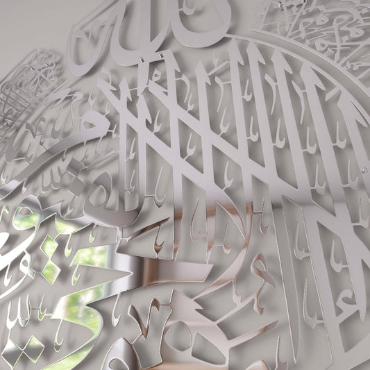 Ayatul Kursi Full Shiny Silver Steel Metal Islamic Wall Art - Multicolor - Global Wall Art