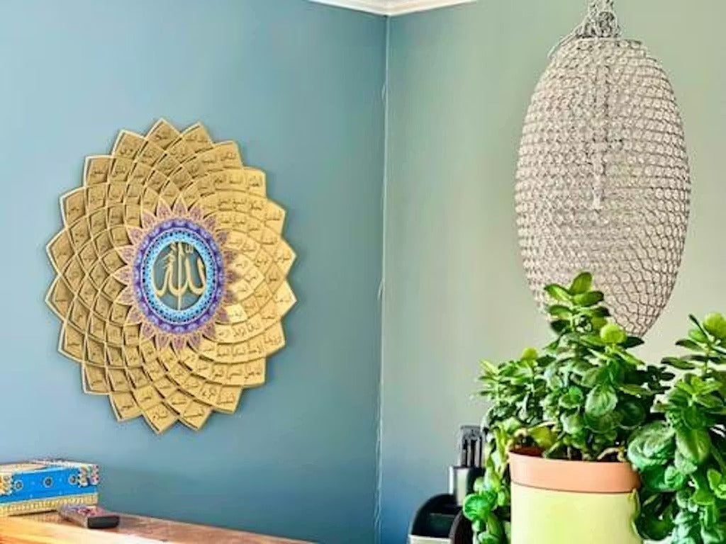 3D Golden Metal 99 Names of Allah Islamic Wall Art (Asma ul Husna) - Global Wall Art