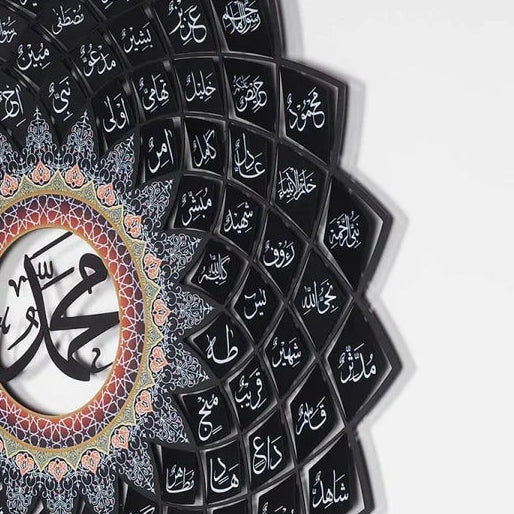 3D Black Metal 99 Names of Prophet Muhammad (Asma un Nabi) Islamic Wall Art - Global Wall Art