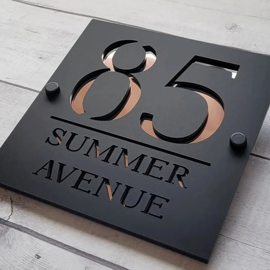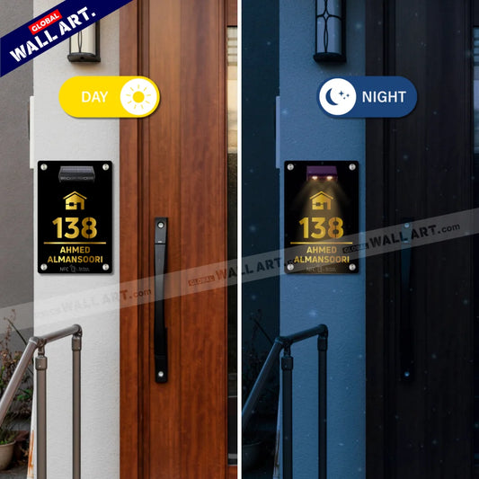 Customizable Black and Golden Square Shaped Acrylic House Name Plate