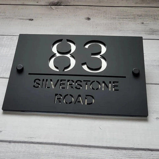 Customizable Black and Silver Rectangle Shaped Acrylic House Name Plate
