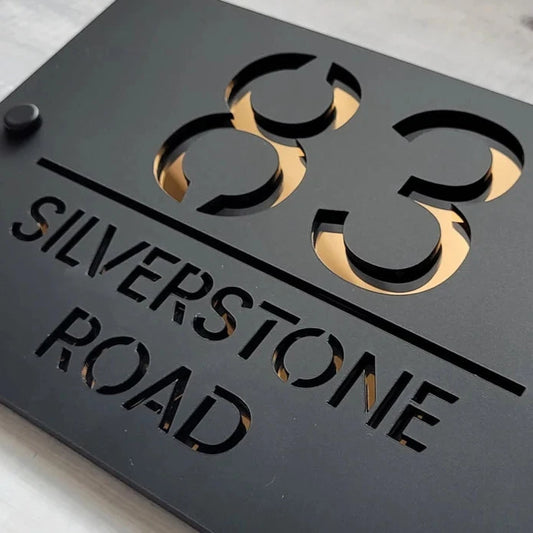 Customizable Black and Golden Rectangle Shaped Acrylic House Name Plate